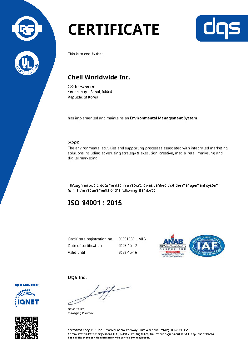 • 영문 사명 ‘Cheil Worldwide’로 변경