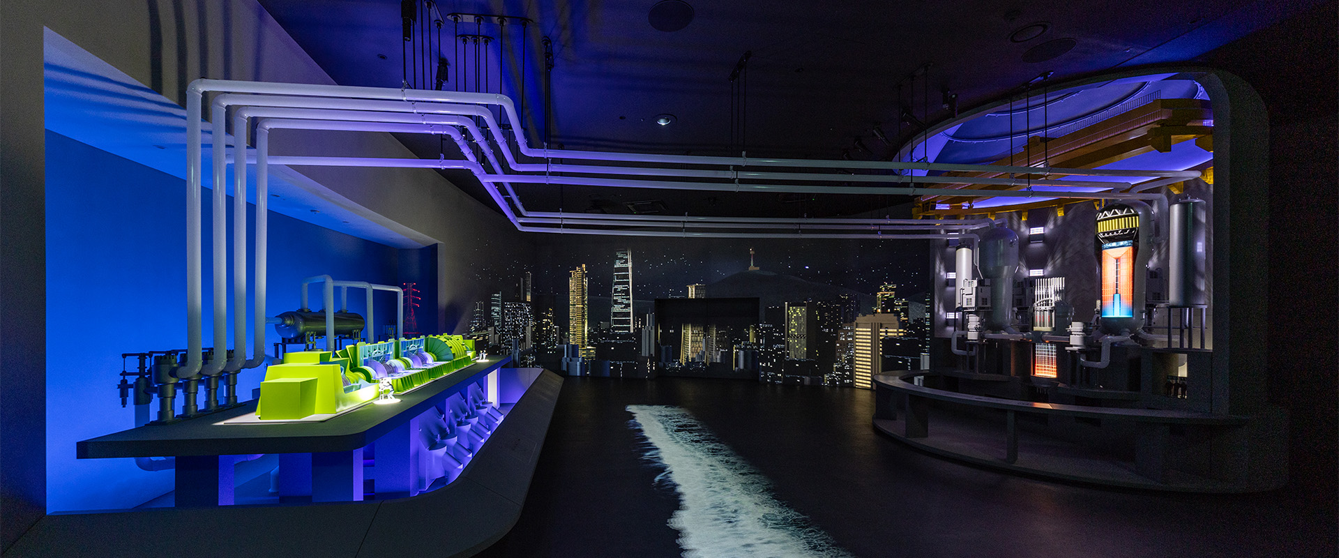 ‘에너지의 여정’이라는 단일 콘셉트 아래 에너지의 과거와 현재 그리고 미래를 관통하는 한국수력원자력의 역할과 기술 발전을 스토리텔링 방식으로 풀어냈습니다. SMR을 비롯한 미래 에너지 기술은 관람객 중심의 서사와 시각적 장치를 통해 쉽게 이해할 수 있도록 구성했으며, 신재생에너지는 에너지 전환 과정에서의 역할을 감각적으로 인식할 수 있도록 표현했습니다. 이를 통해 남녀노소 누구나 직관적이고 몰입감 있게 이해할 수 있는 콘텐츠 경험을 구현했습니다.